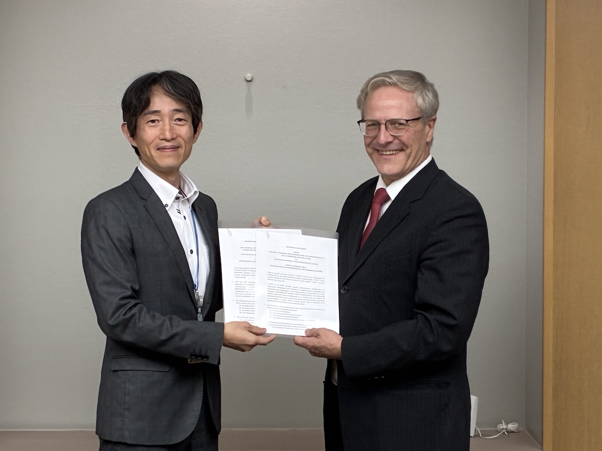 2025年8月にMOUを締結した後、2025年10月3日にはNRCのJoel Martinデジタル研究所長、Melanie Cullinsビジネス・国際イノベーション局長が京都府精華町のユニバーサルコミュニケーション研究所先進的音声翻訳研究開発推進センターを訪れ、締結済MOU文書の手交、ならびに共同研究等の具体的な連携に向けたディスカッションを行いました。